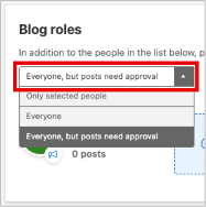 This is done by changing the dropdown underneath ‘in addition to the people in the list below, posts can be written by’: