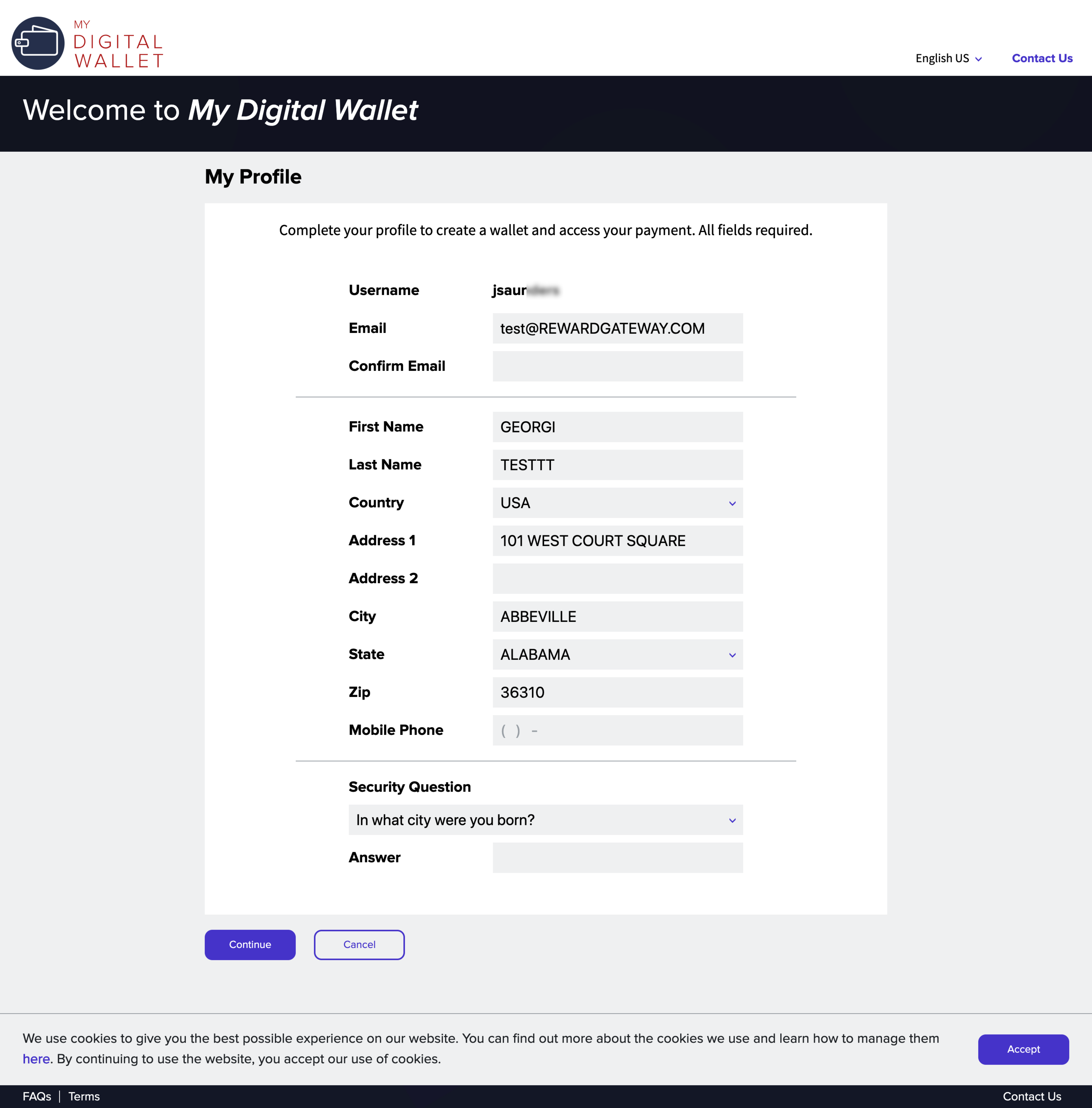 Step 9: On the website, enter the details that will be associated with the Reward Pass Prepaid Mastercard: