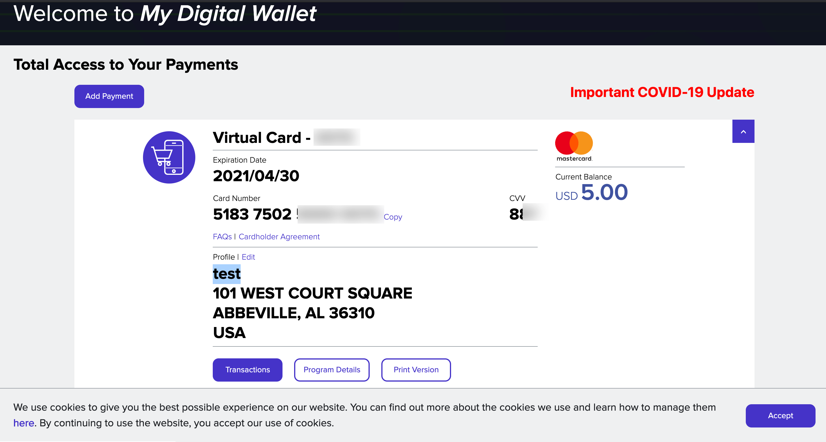 Step 12: Members can add their Reward Pass prepaid card to their Digital Wallet on the website.