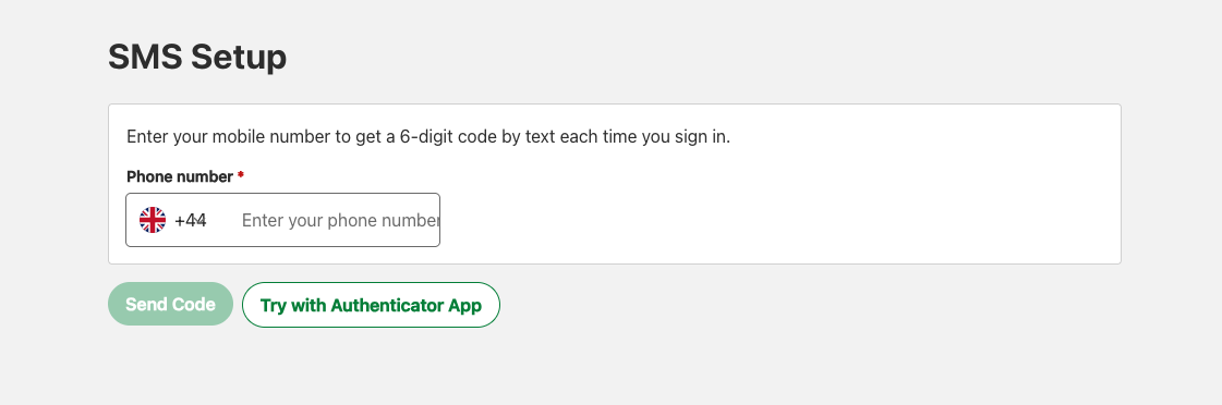 Use this option if you prefer to receive a code by text message rather than via an authenticator app.