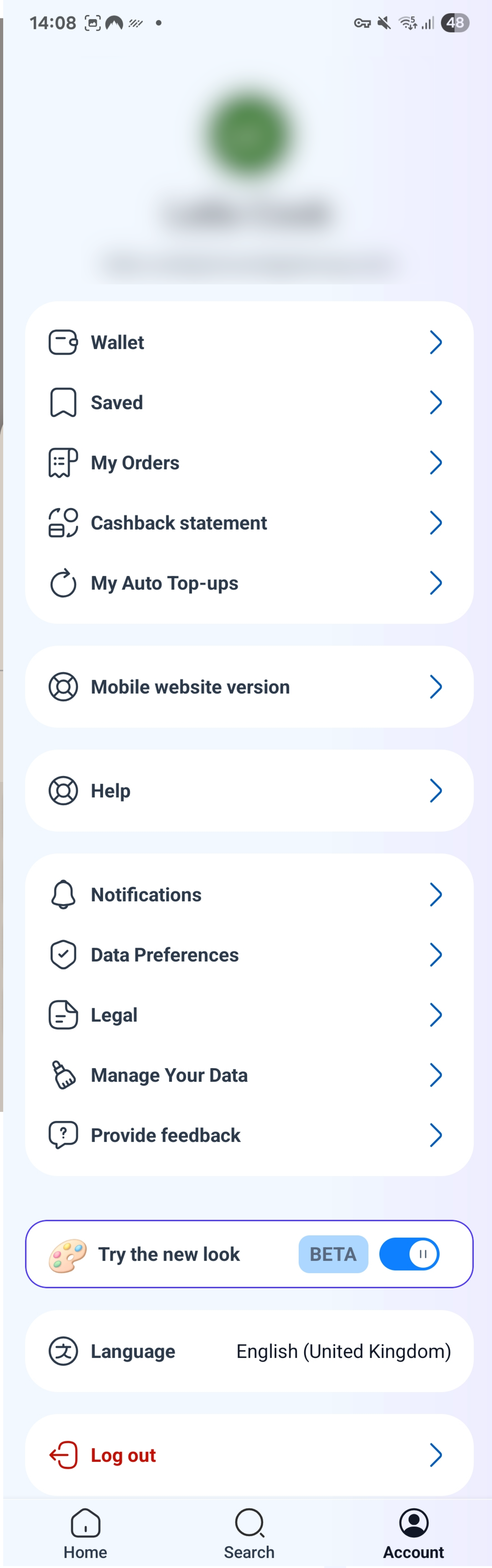 The Account section of the Engage app is accessible from the main navigation, at the bottom of the screen: